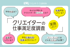 今回のテーマの【年収】については残念ながら満足度が低い結果となりましたが、CWLとしては、このリアルな実態を発信していくことで、クリエイティブ業界に前向きな行動変容が起こしていけたらと思っています。