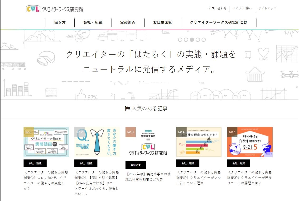 クリエイターワークス研究所は『クリエイターみんながイキイキと働ける世界に』をミッションに、クリエイティブ業界に特化した実態調査を⾏っている調査機関です。